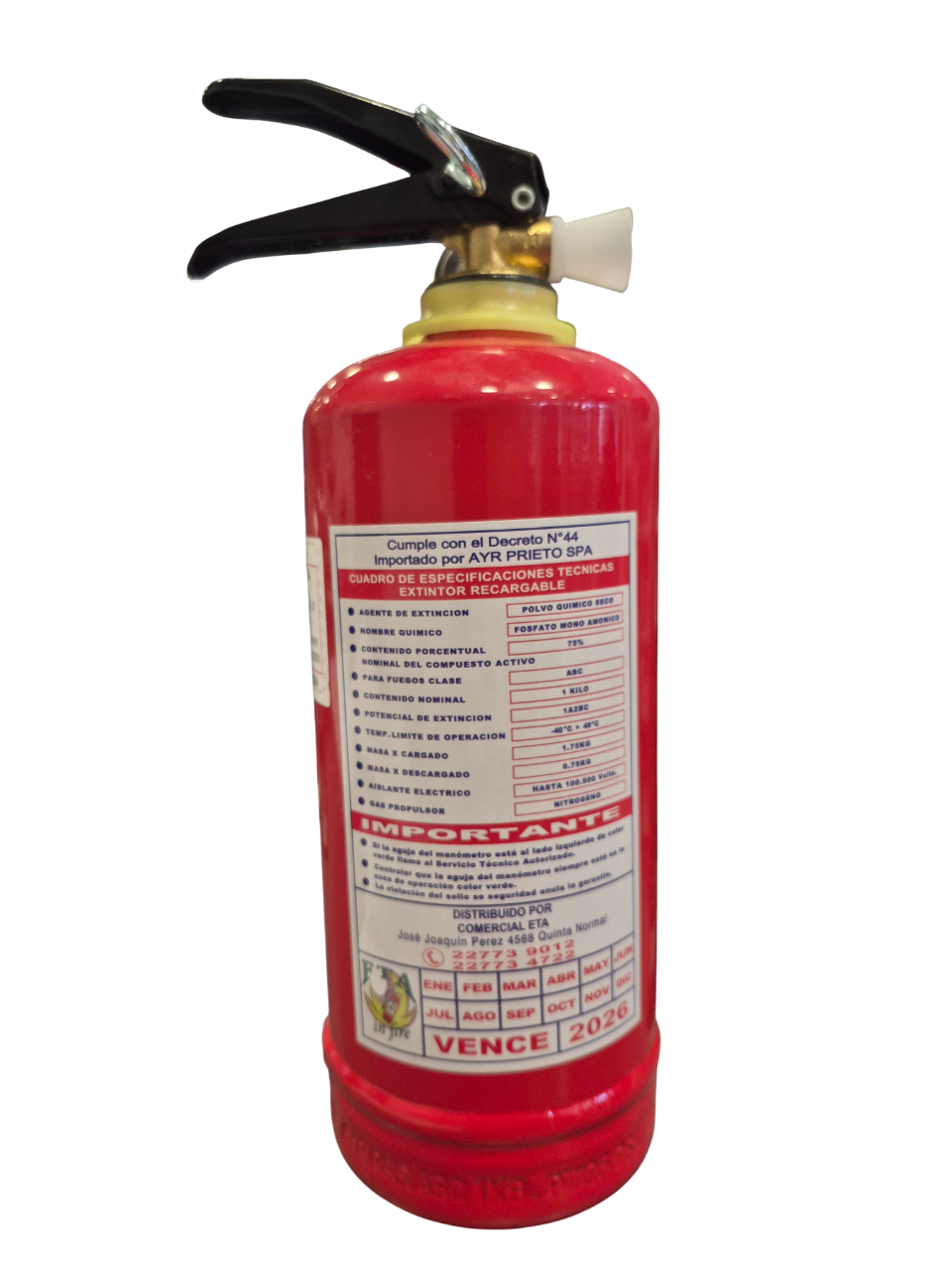 Extintor vehicular ABS con polvo químico seco PQS al 75%, diseñado para combatir incendios de clase B y C en automóviles. Su carcasa de acero reforzado garantiza durabilidad y resistencia ante impactos. Equipado con manómetro de presión para verificar su estado operativo. Ideal para cumplir normativas de seguridad vial y proteger tu vehículo ante emergencias. Fácil de instalar y mantener.